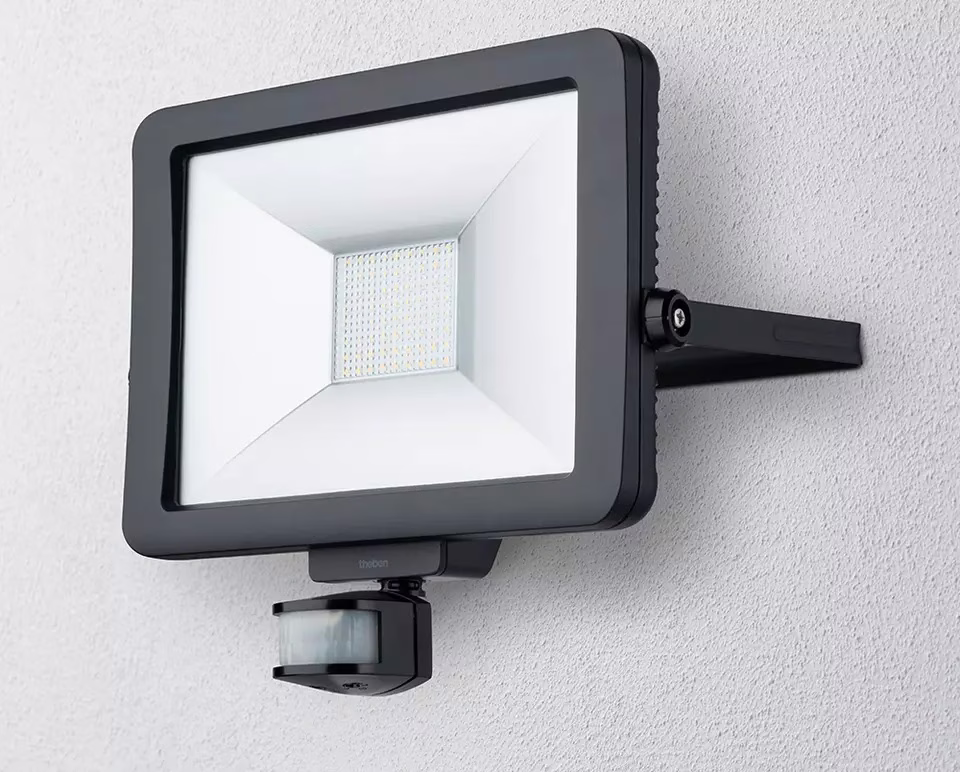 LED spotlight 50 W, black, suitable for outdoor use, flexibly expandable with optional module with motion detector incl. switch output or light sensor incl. switch output, spotlight rotatable through 360°