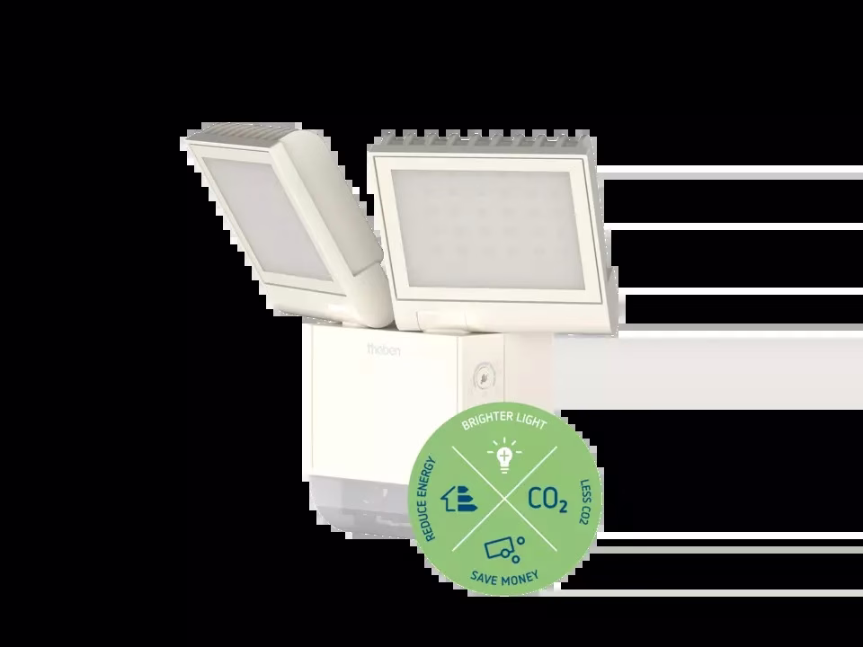 LED spotlight for wall mounting with motion detector, white, 4000 K, 2×900 lm, 2 LED spotlights with a total of 17 W, detection range 180° 10 m, additional light switch output, networkable via wire, successor to 1020923, theLeda S20 WH