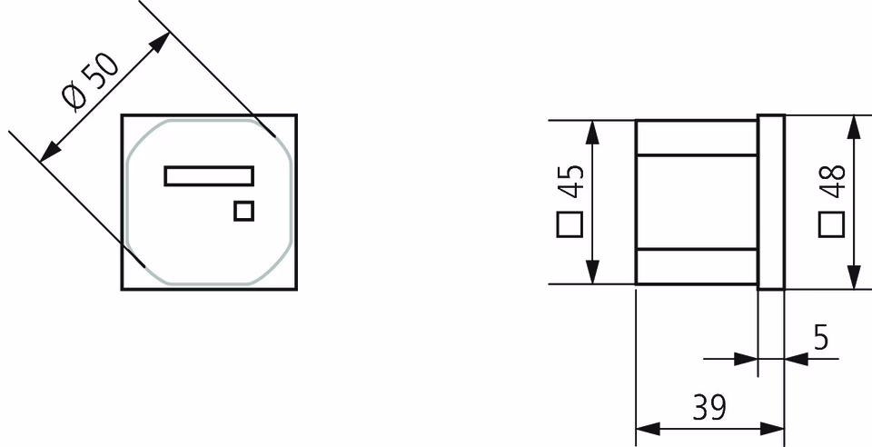 Operating hours counter, 48x48mm front panel, installation cutout 46×46 mm, snap-in mounting and clamping clip, counter up to 99999, 99 hours, terminal or flat plug connection