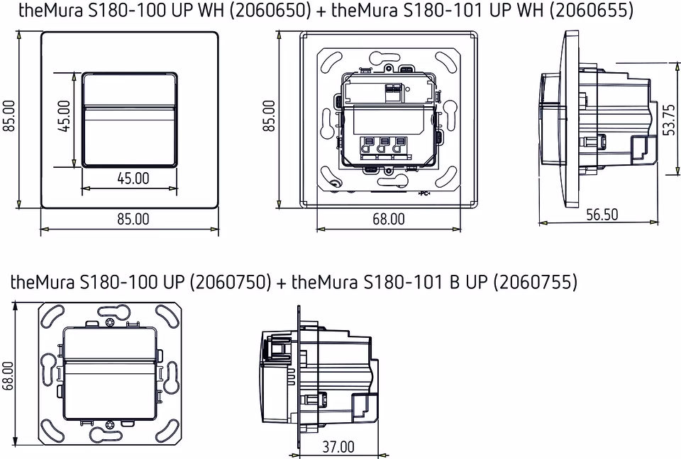 Passive infrared motion/presence detector for flush-mounted wall installation, slave version, without cover frame, cover frame for integration into common switch ranges available as an accessory, semicircular detection range 170° up to 14×17 m, detection range can be restricted, integrated push button (can be blocked)